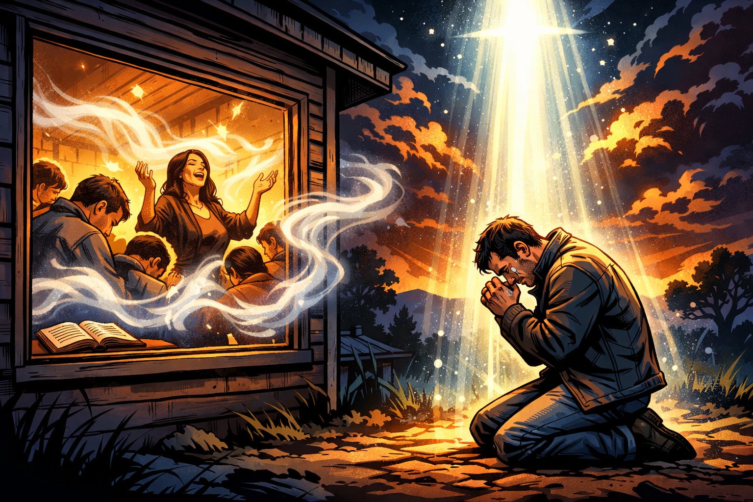 Até que, um dia, me convidaram para participar de uma reunião numa casa. Havia uma mulher fazendo uma campanha de oração por causa dos filhos, que estavam envolvidos com drogas. Era uma reunião simples, numa casa comum, daquelas que muita gente talvez julgasse pequena demais para receber algo grandioso. Mas Deus não depende da imponência do lugar para manifestar Sua presença.